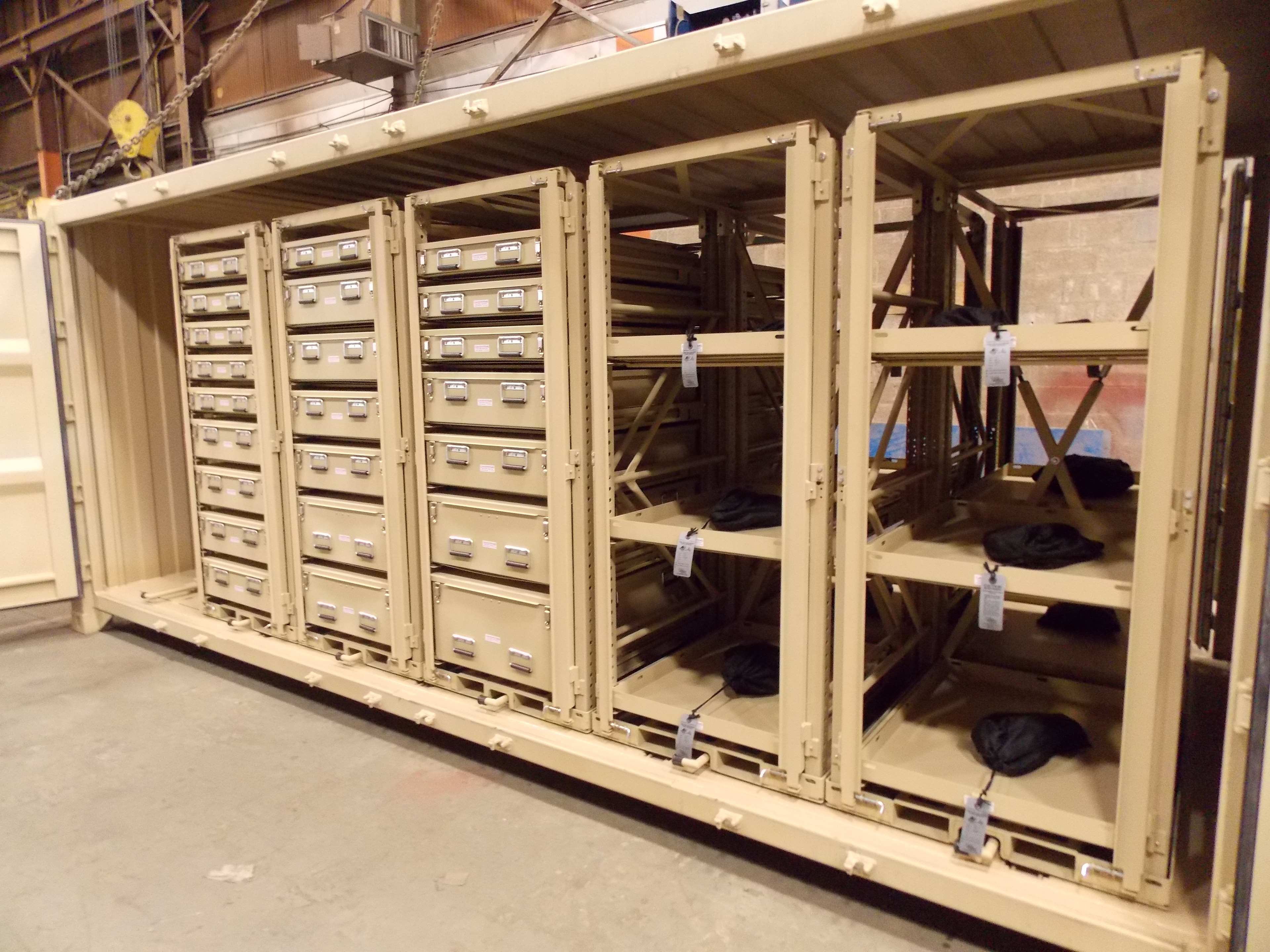 Secured into a container within minutes using a quick-release Adapter Plate. They can be used in a Warehouse function until ready for deployment and are transported easily to point of use with a forklift.