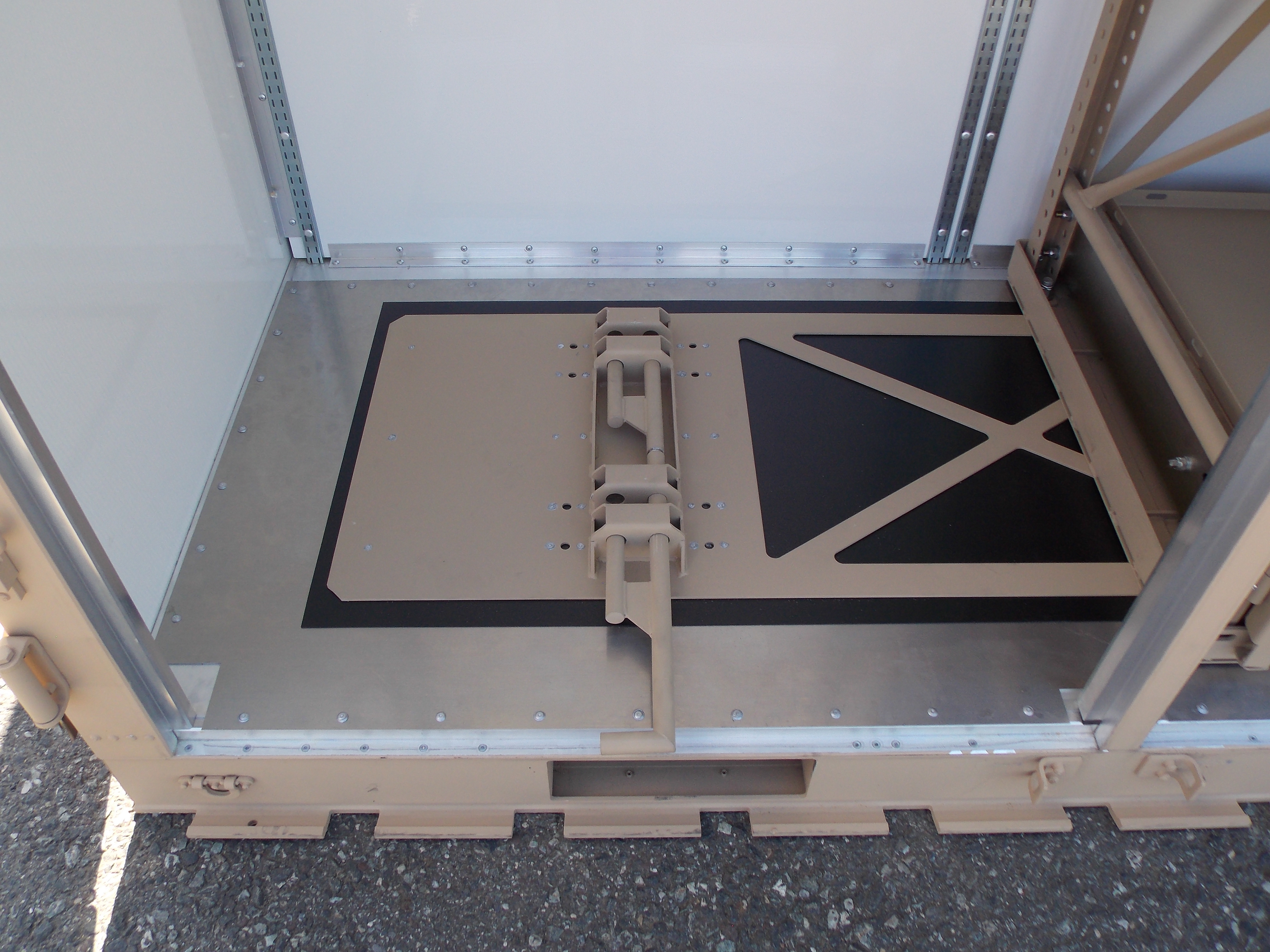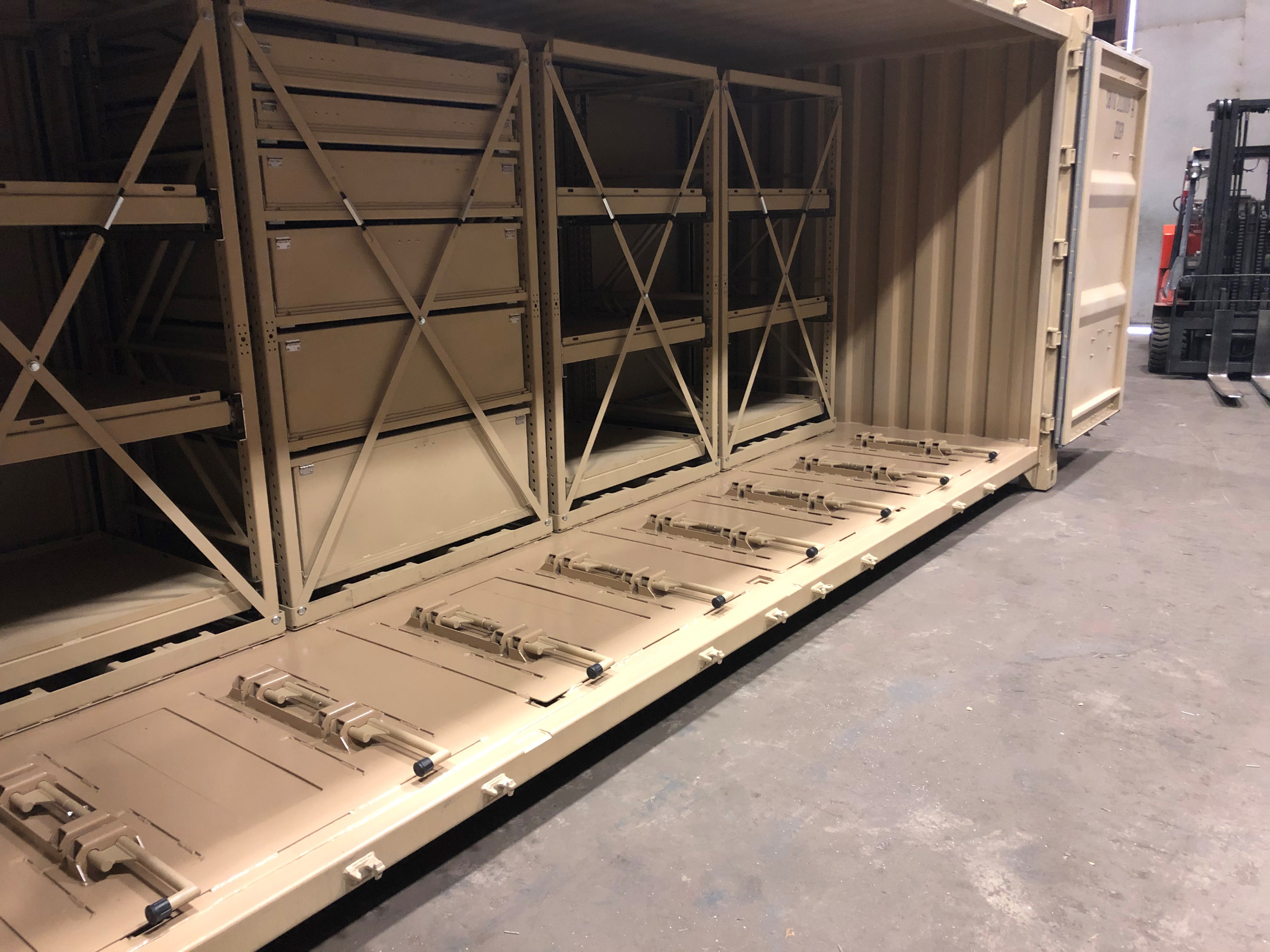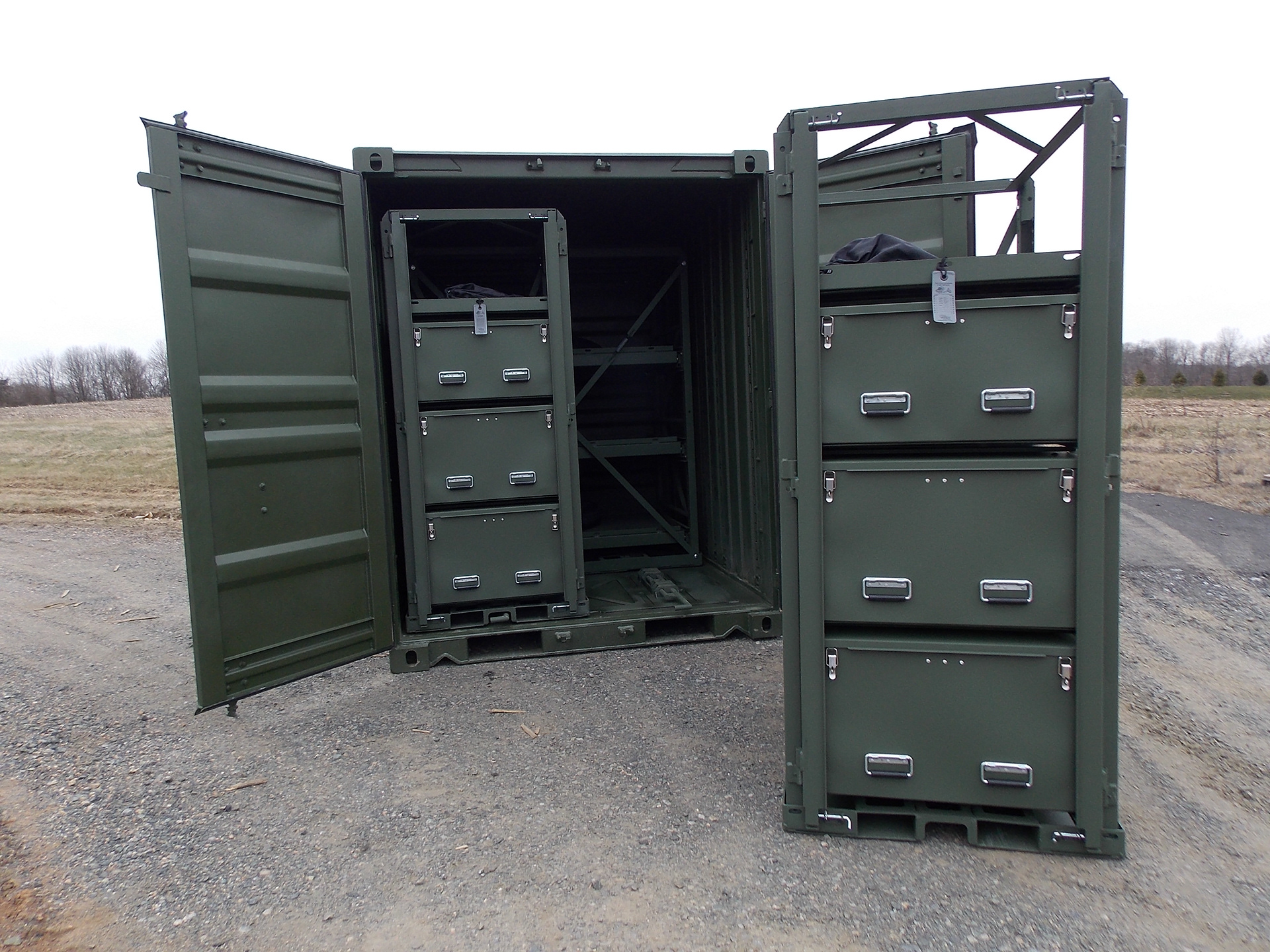 Secured into a container within minutes using a quick-release Adapter Plate. They can be used in a Warehouse function until ready for deployment and are transported easily to point of use with a forklift.