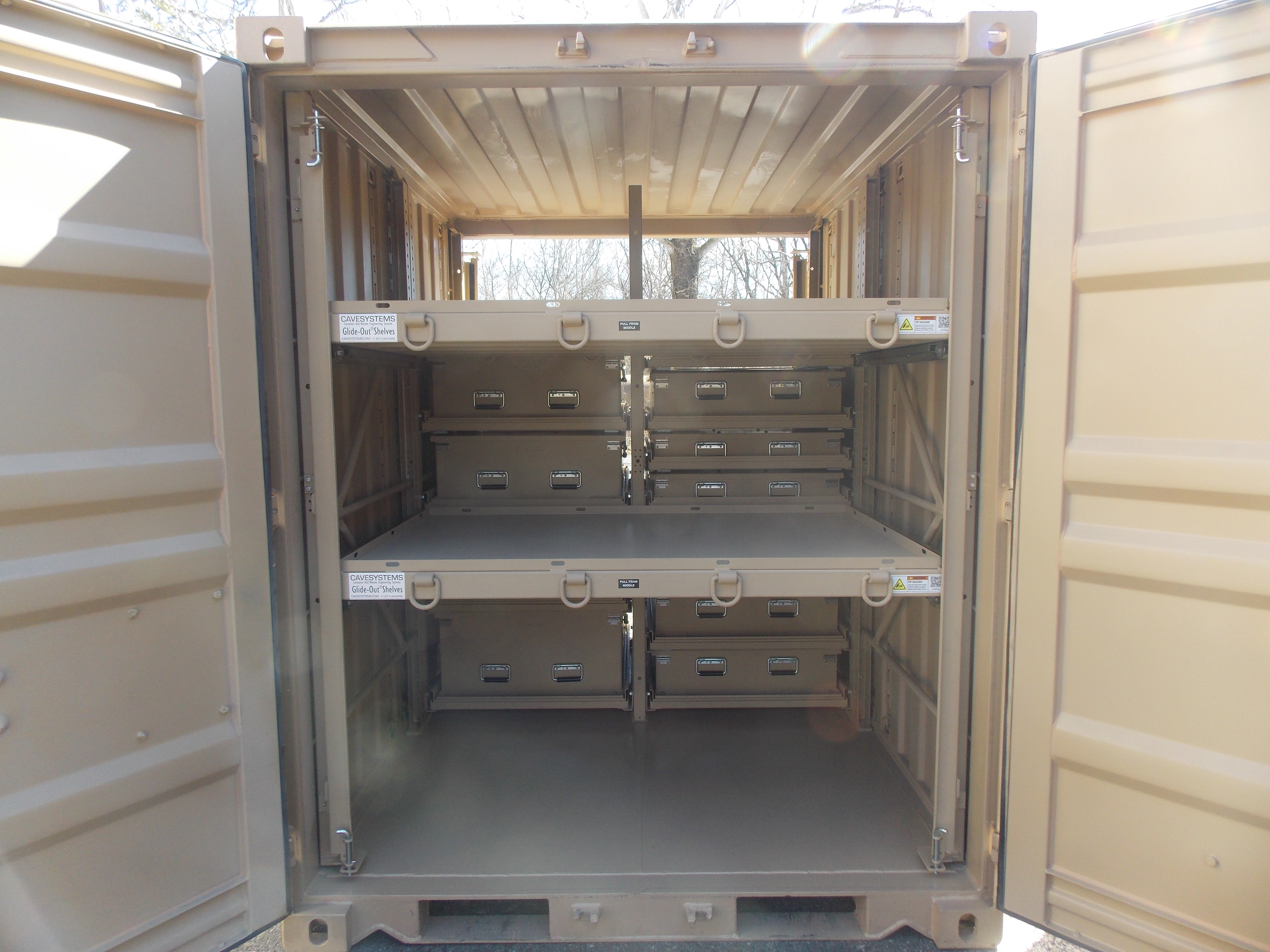 SpaceFrames provide more vertical storage and wider Drawers and Glide-Out Shelves than Removable Units. The framework is welded to strong points of the container providing greater structural integrity.